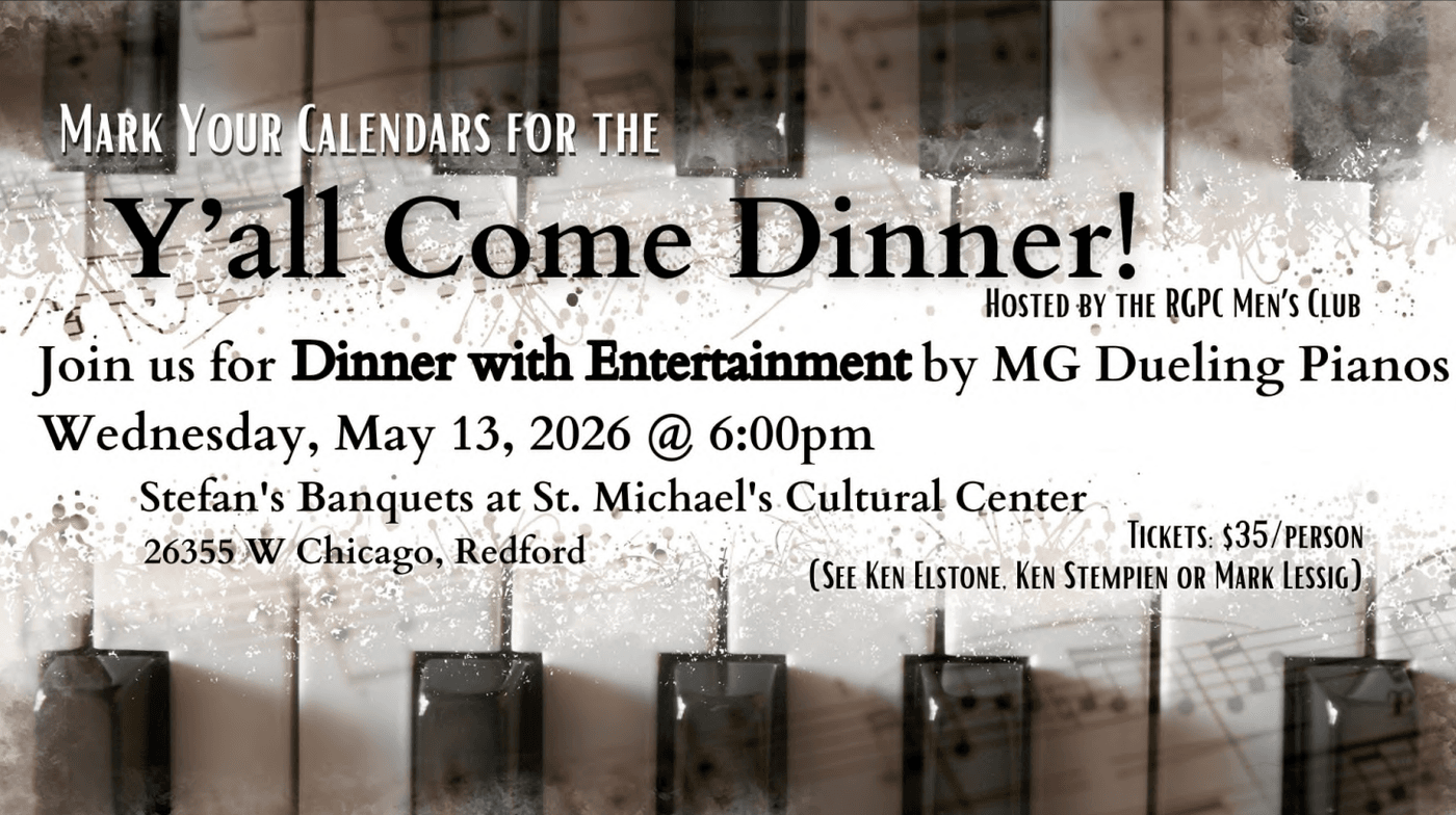 Looking to join Men's Club for fellowship, faith and lots and lots of fun? Contact Ken Stempien or Ken Elstone OR the RGPC Office,